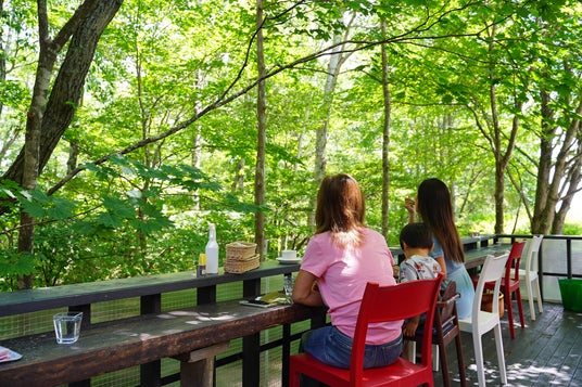 季節で移りゆく森の景色を眺めながら、室内、テラス席とお好きな席でゆったりとお過ごしいただけます。ワンちゃん連れのお客様もテラス席をご利用いただけます!森の風景を見ながら、ゆったりとお食事を楽しんでいただけるよう、レストランスタッフ一同心を込めてお迎えいたします。