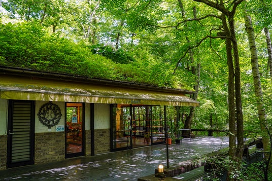 八ヶ岳倶楽部は、森の庭を囲むようにカフェ・レストラン、ギャラリーショップ、ガーデニングショップ、作家個展会場が点在する複合施設です。自然とアート、食を五感で楽しむことができます。