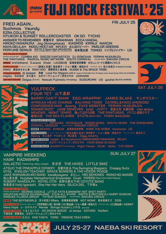 FUJI ROCK FESTIVAL'25 7月25日(金)26日(土)27日(日)新潟県湯沢町 苗場スキー場