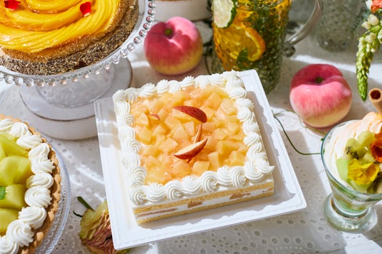 京王プラザホテル伝統のショートケーキを夏仕立てでご提供。パティシエがその場で桃をカットして仕上げることで、フレッシュな状態でお届けします。ふわふわのスポンジ生地に、口どけなめらかな生クリームが夏の果実の美味しさを包む、京王プラザホテルならではの逸品です。