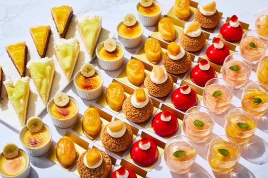 桃やマンゴー、メロンなど、夏の果物を贅沢に使用。パティシエがライブキッチンで仕上げるできたて×ひんやりスイーツやセイボリーを楽しめる「サマースイーツブッフェ」