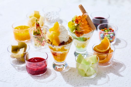 マンゴーやパイナップルなどフレッシュな夏の果物をはじめとした15種類以上のトッピングを自在にアレンジし、自分好みのパフェを作ることができます。平たいチョコレートにドライフルーツやナッツを乗せた自家製マンディアンチョコレートやオレンジ色のキルシュなど、SNS映えするトッピングも必見です。