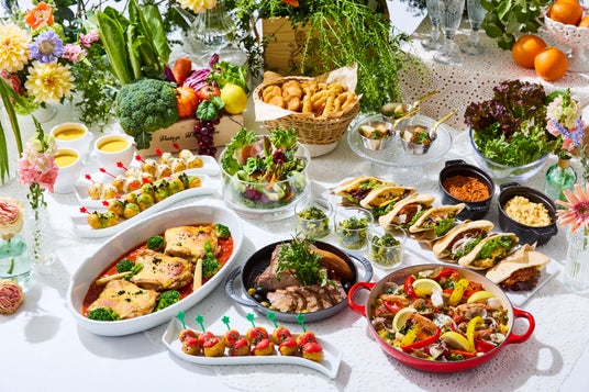 アンケートに多く寄せられたお客様からの「セイボリーをもっと楽しみたい」という声に応え、スイーツだけではなく、「彩りサラダ キウイドレッシング」や「魚介とトマトのパエリア風」、「若鶏の味噌チーズ焼き トマトソース」のほか、夏バテで食欲が落ちる季節にもさっぱりと食べられる「大葉ジェノベーゼの冷製パスタ」など、こだわりのメニューを取り揃えました。