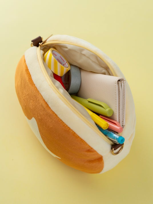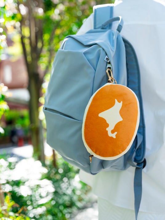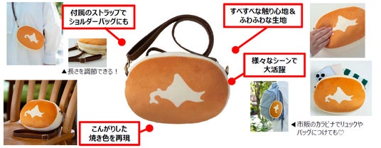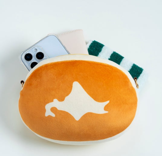 バッグにも変身! 2Way使いができる優れもの。思わず触りたくなるようなもっちりした手触りに、こんがりした焼き色と北海道マークが細かく再現されたポーチは、まるでほんもののようです。