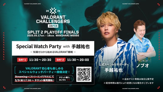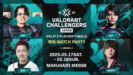 VALORANT Challengers Japan 2025実行委員会は、5月17日(土)、18日(日)に幕張メッセで開催する、ライアットゲームズが開発・運営するタクティカルFPSゲーム「VALORANT」の日本最大級のeスポーツ大会「VALORANT Challengers Japan 2025」のオフラインイベント「VALORANT Challengers Japan 2025 Split 2 Playoff Finals」に関する大会直前情報をお届けします。