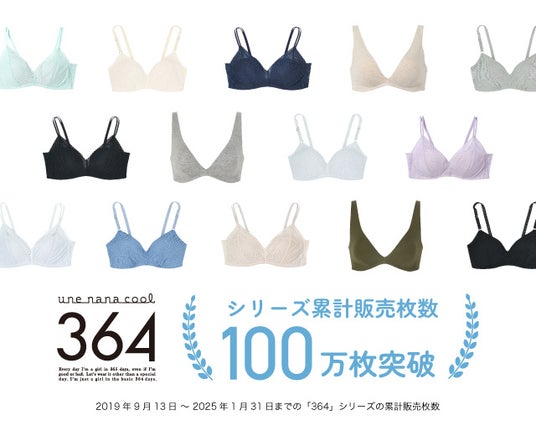 ワコールから生まれた下着屋さん「ウンナナクール」は、ノンワイヤーブラ『364(サンロクヨン)』が2019年9月13日から2025年1月31日までの期間で累計販売枚数100万枚突破したことを発表します。