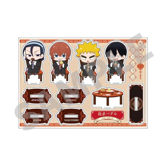 中華をほおばる福富、荒北、東堂、新開隼人のオリジナル描き起こしミニキャラアクリルスタンドのセット。 4,840円(税込)