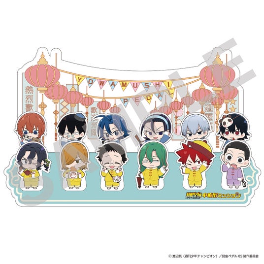 メイン会場の「ChinaTown80Hall」では中華街に集う弱虫ペダルキャラクターがデザインされたさまざまな景品がゲットできるガラポン、スピードくじ【それぞれ1回600円(税込)】といった縁日ゲームもお楽しみいただけます。目玉の景品は「アクリルジオラマ」。本イベントの世界感を立体的に再現した逸品です。他にもアクリルキーホルダー、グリッター缶バッジ、特製ステッカーなど魅力的な景品がそろっています。