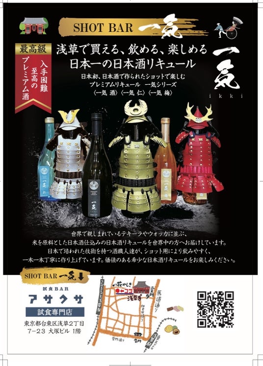 【浅草に出現】甲冑をまとった“現代サムライ”がショット酒を手売り!? 日本初※のショット用日本酒リキュール「一気」浅草ポップアップを3日間限定開催!