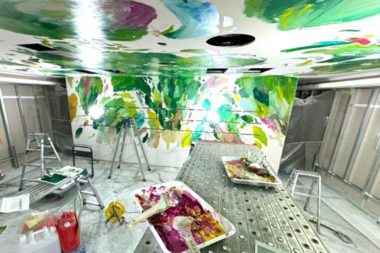 「自然と都市が調和するまち」吉祥寺のイメージを、アーティストが6日間かけて筆を重ね、まるで“森の中にいるような”没入空間を創出。