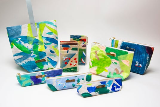 吉祥寺の自然をモチーフにしたポーチやペンケースは、アーティストが絵画を描く時に使う、キャンバス生地を活用。見た目だけでなく使い勝手がよく、手ざわりもやさしい仕上がり。全部一点ものなので、スワンの顔がみんな違うのもポイント♪絵具のノリや色彩、立体感をお楽しみください。