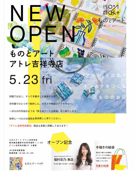オープン当日の5月23日(金)には、ものとアート代表であり、「ayanofukumura」デザイナーでもある福村彩乃が店舗に来店予定!(10:00~12:00)
