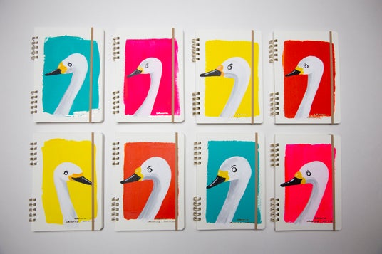 アーティスト庭山瑞希が手描きした「手描きのリングノート」のスワンたちは見つめる方向も目のかたちも、ぜ~んぶ違う!