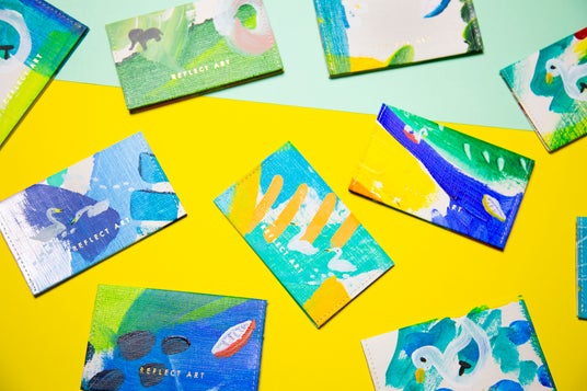 アートを“持ち歩く”楽しみを! 1点ずつ描かれた色とりどりのカードケース&ブックカバーは、使うたびに気分もアップ。