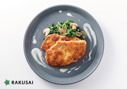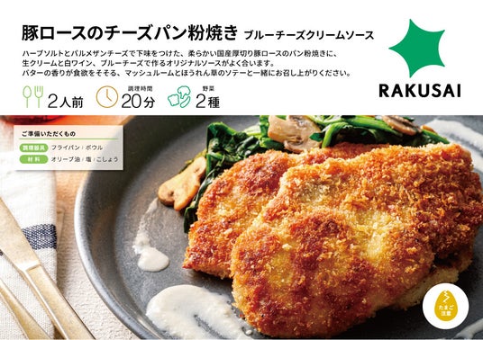 RAKUSAIでご好評いただいている「豚ロースのチーズパン粉焼き ブルーチーズクリームソース」も爆肉祭り!の対象になります。ジューシーな豚ロース肉を、サクサクとした食感のチーズパン粉で包み焼きにした、見た目も華やかな一品。濃厚なブルーチーズクリームソースの芳醇な香りととろける舌触りが、至福のひとときを演出します。