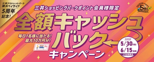 ・三井ショッピングパークポイント会員様限定 全額キャッシュバックキャンペーン(2025年5月30日(金)~6月15日(日))