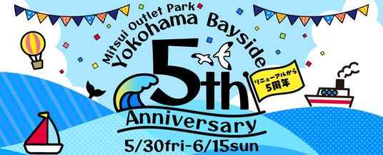 三井不動産商業マネジメント株式会社(東京都中央区)が運営する、三井アウトレットパーク 横浜ベイサイドは、2025年5月30日(金)~6月15日(日)の期間、「Yokohama Bayside 5th Anniversary」を開催いたします。