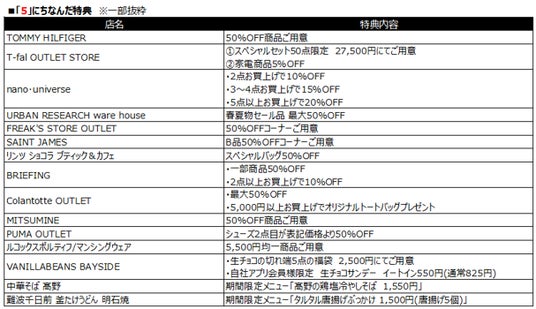 「Yokohama Bayside 5th Anniversary SALE」限定特典