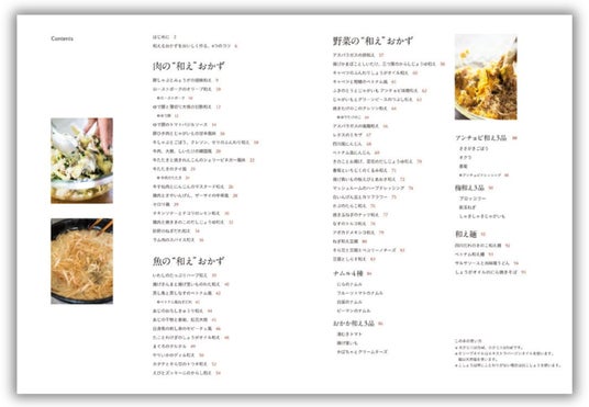 本書で紹介されるのは、白和えや胡麻和えといった副菜の枠にとどまらない、メインディッシュになる和え料理。豚しゃぶとみょうがの胡麻和え、牛たたきと焼きれんこんのシェリービネガー風味、まぐろのタルタルなど。白いごはんにぴったり合い、しっかりおかずになるレシピが満載です。