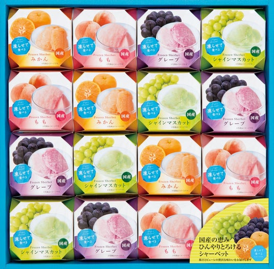 名称:シャーベット(グレープ・シャインマスカット・みかん・もも) 16個入り(各4個)