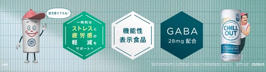 この度、フルーティーなおいしさと、微炭酸による爽やかな味わいはそのままに、従来より配合されていたGABAを機能性関与成分として28mg含む機能性表示食品に進化させ、「チルアウト ストレス&疲労感ケア」として5月26日(月)から全国で発売します。GABAは、仕事や勉強による一時的な精神的ストレスや疲労感を軽減する機能があることが報告されています。