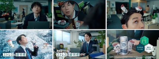 新WEB CMには、「実はイケメンなお笑い芸人」として知られ、女性誌で特集も組まれる水川かたまりさんが出演。ストレスが溜まり冴えない顔で仕事をする会社員役の水川さんが、乱れた髪やネクタイなど身だしなみを整えた後に、CHILL OUTを飲むとすっきり!忙しい日常の中で爽やかさを取り戻す水川さんの姿がご覧いただけます。