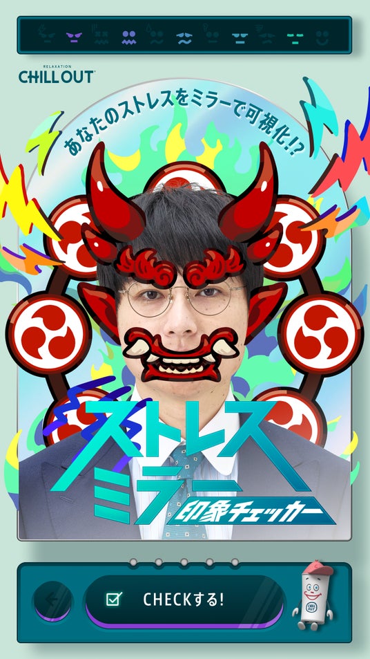 AI表情解析ツールと数問の質問を通じて、自分の抱えるストレスによる印象イメージをユニークに可視化する「ストレスミラー 印象チェッカー presented by CHILL OUT」を5月26日(月)より開設します。AI表情解析ツール「Face-API」と、臨床心理士のみたらし加奈さんが監修した自分の現在のストレスをチェックする数問の質問に答えることで、自身の表情が周りからどう見られているかが13種類の「ストレス印象キャラ」に選別されます。