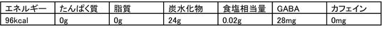 果糖ぶどう糖液糖(国内製造)、ぶどう果汁、オレンジ果汁、ヘンプシードエキス、GABAパウダー、ホップエキス/炭酸、香料、酸味料、L-テアニン、酸化防止剤(ビタミンC)