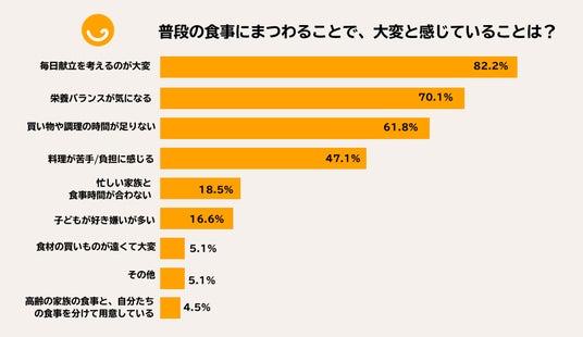 アンケート結果からは、食に対する不安や時間的制約に加え、「料理を負担に感じる」といった心理的なストレスも浮き彫りになっています。日々の食事における“見えにくい苦労”に寄り添い、家庭に「ゆとりある時間」と「安心できる食卓」を届けることが、当サービスに寄せられた期待であると、改めて認識しています。