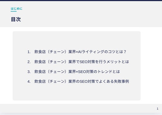 株式会社Starlight(本社:東京都豊島区、代表取締役社長:黒田 真乃介、以下「当社」)は、飲食店業界業界の皆様を対象に「2025年版 飲食店業界向けAI×SEOトレンドレポート」を公開いたしました。本レポートは飲食店業界がSEOを活用して集客を強化するための最新事例や成功パターン、そして成果に直結する戦略的なAI×SEOノウハウを一冊に集約しています。AI化が進む現代で、SEOをAIで効率化しながら集客の最大化を実現しませんか?