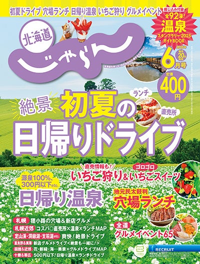 日帰り温泉&ランチお手軽ドライブ、花畑・展望台・雲海etc.初夏の絶景ドライブ、いいお湯!日帰り温泉45湯、地元民おすすめ!愛され穴場ランチ、いちご狩りドライブ&人気店の絶品いちごスイーツ、7月まで使える!【全道】グルメイベント65…など今月も旬の情報が満載です。ぜひご覧ください。