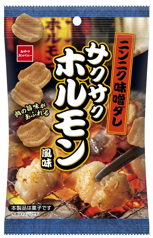 株式会社おやつカンパニー(所在地:三重県津市 代表取締役社長:横山正志)は、ホルモンをイメージした“ユニークな見た目”と、ノンフライ製法ながらニンニクのパンチがきいた“濃厚な味”にこだわったミート―フレーバースナック菓子「ニンニク味噌ダレ サクサクホルモン風味」を、2025年5月19日(月)より全国にて期間限定で発売します。
