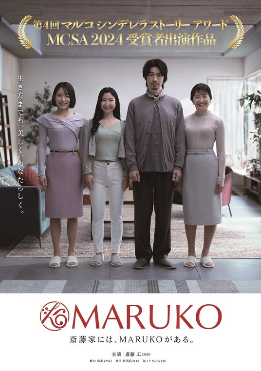 今回の新CMは「斎藤家には MARUKO がある」をテーマに、MARUKOのイメージキャラクターを務める俳優・斎藤 工さんと、MARUKOご愛用者でマルコ株式会社主催のコンテスト(MCSA※)にて受賞された3名のお客様が出演。斎藤工さん演じる斎藤家の長男は、母や妹たちの様子が以前と違うことに気づき、「母さんも、妹たちも… 以前と全然違う…何が起きているの?」と不思議に思って尋ねると、全員が「MARUKO を始めたの!」。家族の変貌の理由が“補整下着”だと知り、「MARUKO なのかぁー!」と叫ぶ“長男たくみ”。ミステリ アスかつコミカルな演出で“補整下着で人生が変わる”というマルコのメッセージを描いております。