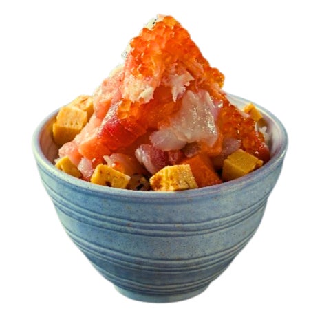 約10種類の海鮮が山のように“ドン”と乗った海鮮丼。食べ終わる前に別添えのごまだれで和えた旬の白身魚のお刺身をのせて、味変もお楽しみいただけます。