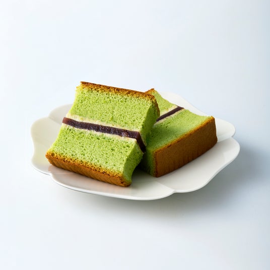 カステラ生地に川西産の秘伝豆入りクリームと献上小倉羊羹をサンドしました。