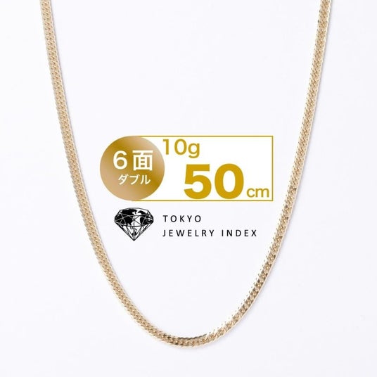 K18イエローゴールド 喜平ネックレス 6面 ダブル 10g 50cm