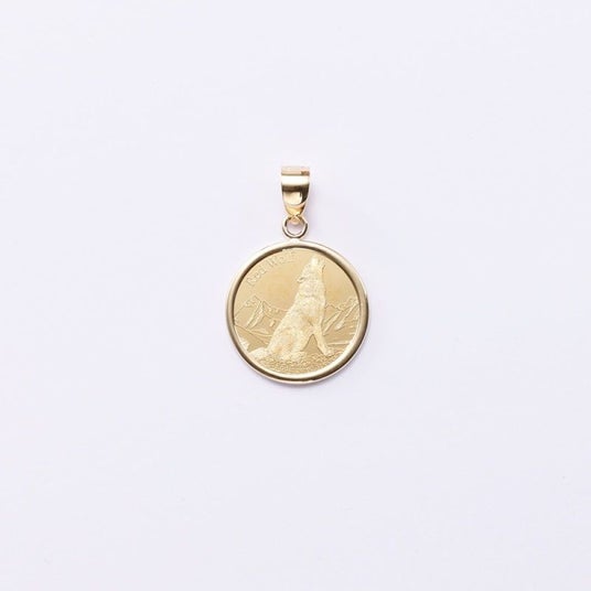 純金コイン ペンダントトップ (K18イエローゴールドフレーム付) 1/25oz ウルフ