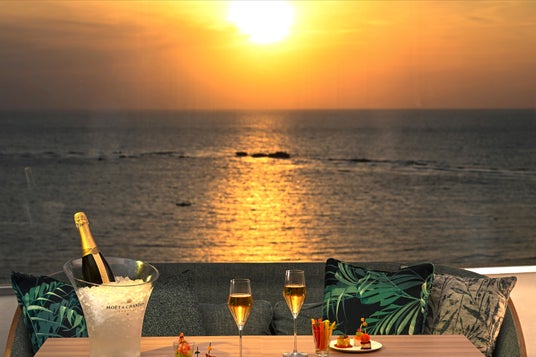 空がオレンジ色に染まる夕暮れ時には、夕食前におすすめの「CHANDON BRUT」などのワインを中心に揃えました。アペタイザーもあり、沈みゆく美しい夕陽を眺めながら大切な人と旅行の思い出話をしたり、ゆったりとお酒を味わえます。