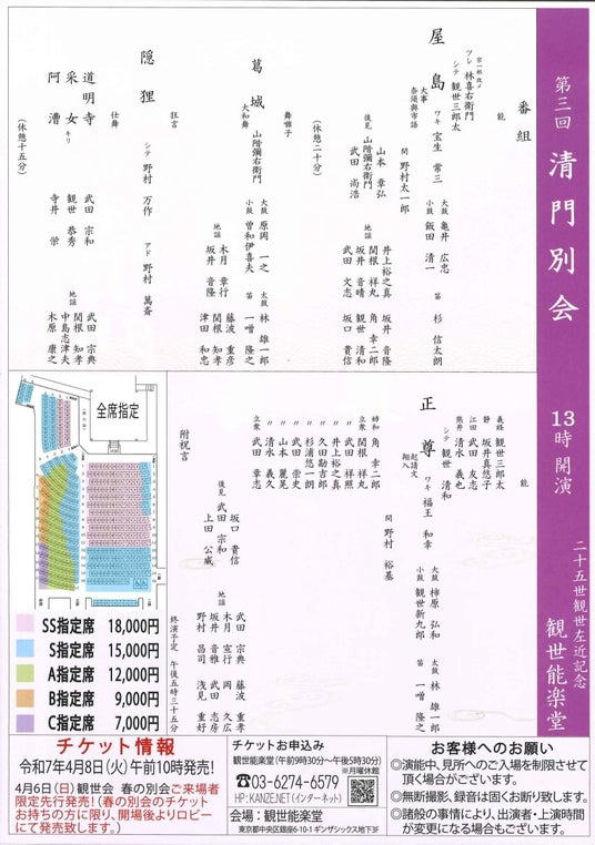 観世宗家主催「第3回 清門別会」2025年6月15日開催!
