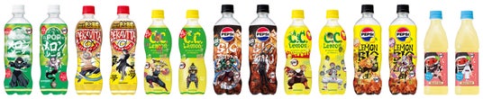 「竈門炭治郎 立志編」・「無限列車編」・「遊郭編」・「刀鍛冶の里編」の鬼殺隊と鬼の対決をデザインしたオリジナル「対決ボトル」を「C.C.レモン」(2種)、「超すっぱ C.C.レモン」(2種)、「デカビタC ゴッドチャージ」(2種)、「POPメロンソーダ」(2種)、「ペプシ〈生〉 BIG ZERO」(2種)、「ペプシ〈生〉 BIG ZERO LEMON」(2種)、「なっちゃん りんご」(2種)の全14種で展開します。