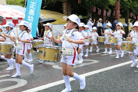 子どもみこしやマーチングバンドなどが、明治通りの約1キロメートルをパレードします。市消防団による有馬火消し行列隊も出場。六角堂広場など6会場では、ダンススクールやよさこいチームなどがパフォーマンスを披露します。