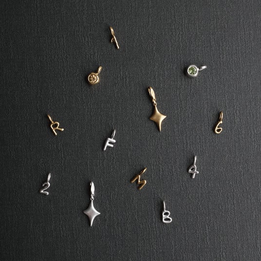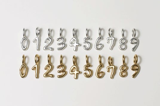 デザイナーがひとつひとつ drawing した文字から制作したオリジナルデザインの "Drawing number charm" は、様々なコーディネートをお楽しみいただけるようにサイズ感に拘り1から0まで全ての数字をご用意しております。