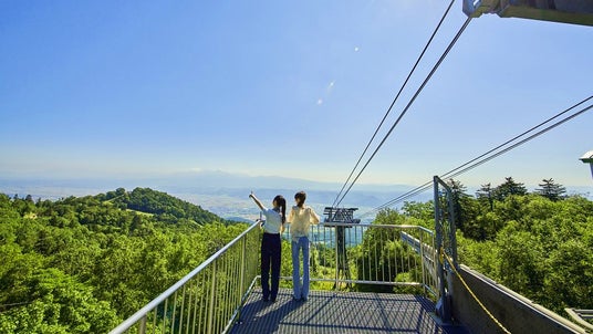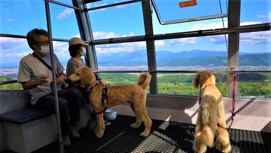 「絶景空中散歩」は一般の方の利用便とは別にワンちゃん専用便を運行し、気兼ねなく景色を一緒にお楽しみいただけます。また山頂駅前のゲレンデにて「ドッグラン」を同時開催。大型犬と小型犬用の2つのゾーンを整備解放いたします。広場にてリードを放しワンちゃんに思いっきり走っていただき、ぜひワンちゃんの写真撮影などをお楽しみください。