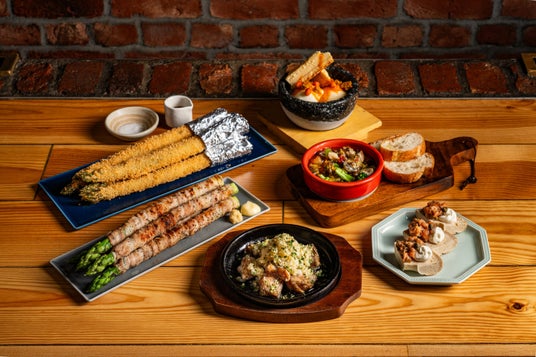 とかち塚田の定番”新得地鶏”の季節の味わいは<新得地鶏のむね焼きさっぱりレモンジンジャー>が新登場、そのほかに、北海道産ゆめちから100%使用のベーグルを使用した<もっちりベーグルのブルスケッタ>、初夏の定番<北海道産アスパラガス><十勝 大樹漁港のつぶ貝>、希少な<士幌産サジー>を使った初夏の味わいをご用意します。