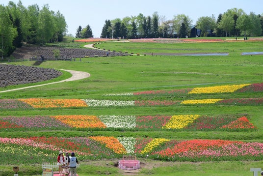 札幌近郊最大級!約23万本120品種のチューリップが丘一面を彩ります。