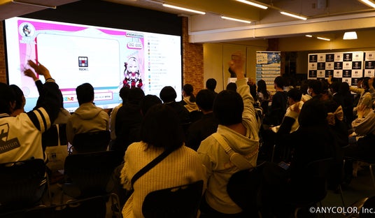 コラボオープンキャンパスでは、サロメさんと一緒にTECH.C.の学校情報をチェックしながら、学びの魅力を楽しくご紹介。その後、TECH.C.のゲーム分野に関わる専攻で学ぶ学生がUnreal Engine 5で制作したゲーム『へべれけウォーキング』を、サロメさんに実際にプレイしていただきました!