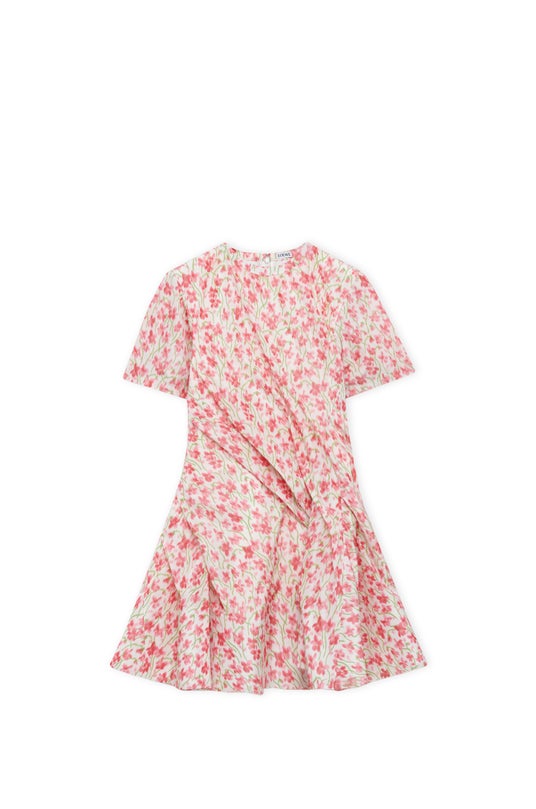 こうした、室内にありながらミステリアスな状況は、パターンとプロポーションの対話を通してワードローブを築き上げていくという本コレクションのコンセプトを際立たせています。流れるようなシルエットや野心的なテーラリング、そして秀逸に用いられるフローラルやレザーによって、ロエベが追求するフォルムと素材へのダイナミックなアプローチが表現されます。抽象的でありながら実用的なフォルム、身体と衣服の間に生まれる遊び心溢れる対話はロエベの真髄といえます。シグネチャーバッグは新たなカラーと素材で展開。パズルはプレーンなモデルのほか、装飾的なバイカーベルト付きのモデルも登場し、マドリードバッグにはサプルグレインカーフスキンが加わります。新たなテキスタイルをまとった万能なロールトップ バックパック、レザーをまとったフリルが魅力のオラバッグも発売します。