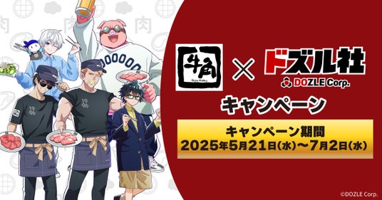 株式会社ドズル(本社:東京都品川区、代表取締役社長:ドズル(YouTubeクリエイター)、以下、ドズル社)は、コロワイドグループの株式会社レインズインターナショナルが展開する「牛角」とのコラボレーションを記念して、ドズル社メンバーがセレクトしたコラボ記念限定セットメニューやオリジナルグッズが登場するキャンペーンを、2025年5月21日(水)から7月2日(水)の期間で、全国の牛角(※)にて実施します。