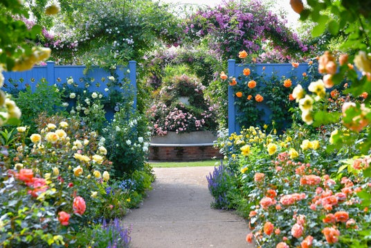 春のローズガーデンの顔となるガーランドガーデン。9種の一季咲きのつるバラが開花するのは春だけ