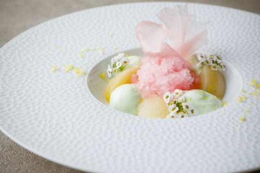 天神川沿いの緑豊かな自然に包まれたレストラン「TENJIN」では、白桃やスイカ、マンゴーなど夏の果実で仕立てるアフタヌーンティーセット「サマーアフタヌーンティー -納涼-」をご提供いたします。白桃とフランボワーズのババや麦わら帽子に扮したマンゴーのムースなど、愛らしく遊び心のあるスイーツをはじめ、京都産の旬の食材を使用したセイボリーがティースタンドを彩ります。また、昨年人気を博した口どけなめらかなシェイブアイスとパフェが融合した「夏 麓 氷(なつ ろく ごおり)」は、今夏さらにバージョンアップしたフレーバー 2 種で登場。白桃はヨーグルト氷と桃のソルベ、フレッシュな白桃と赤桃で華やかに、マンゴーは濃厚な甘みのアップルマンゴーにココナッツのエスプーマとアイスを添え、トロピカルにアレンジしました。